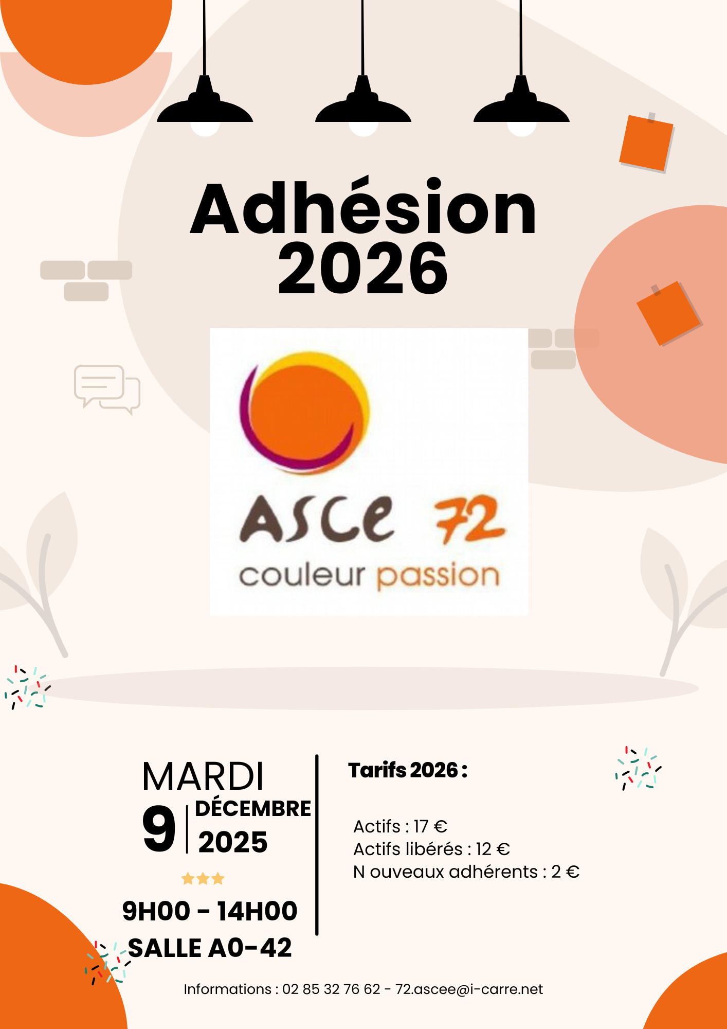 L’ASCE 72 lance sa campagne d’adhésion pour 2026, le 09/12/2025.