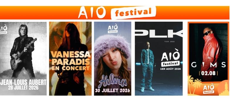 Nous avons le plaisir de vous proposer pour l’édition du Aio Festival 2026 les artistes qui viennent d’être annoncés pour les 28,29, 30 juillet et 1er et 02 août 2026.