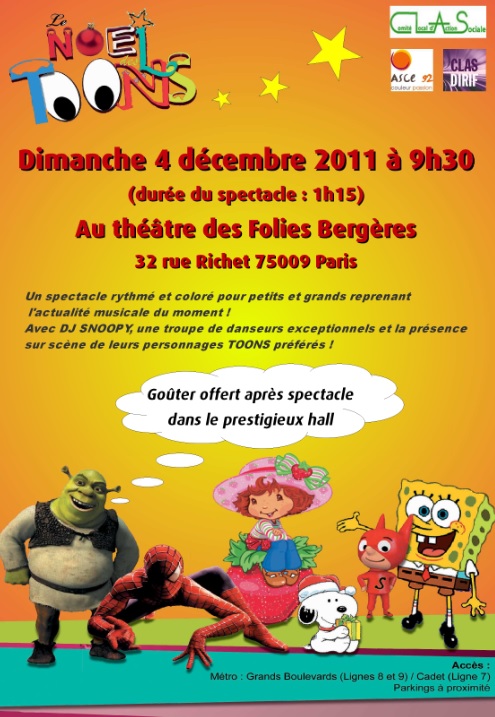 L’Arbre de Noël 2011 pour les enfants des agents des deux Directions Régionales DRIEA et DRIHL a eu lieu le dimanche 4 décembre 2011 au théâtre des Folies Bergères.