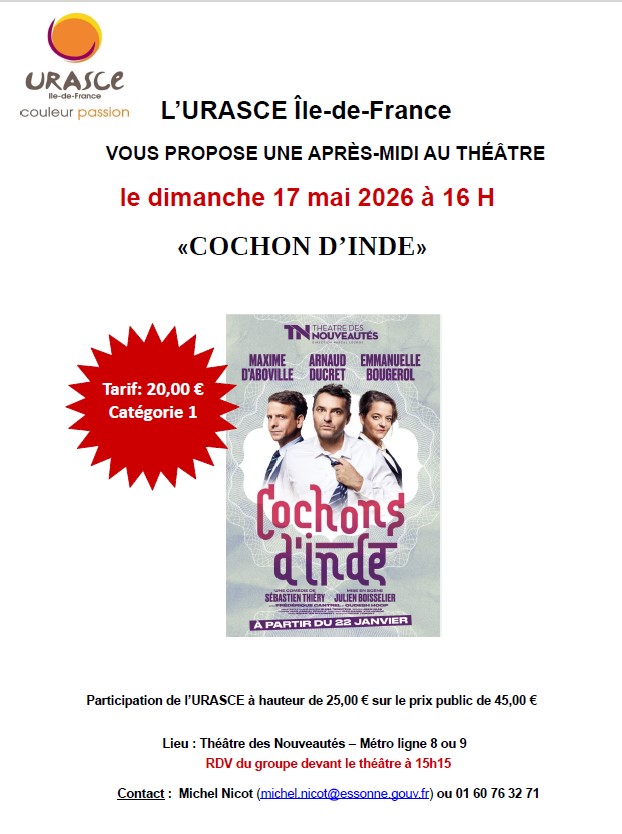 L’URASCE vous propose une sortie théâtre le 17 mai 2026 à 16h.
