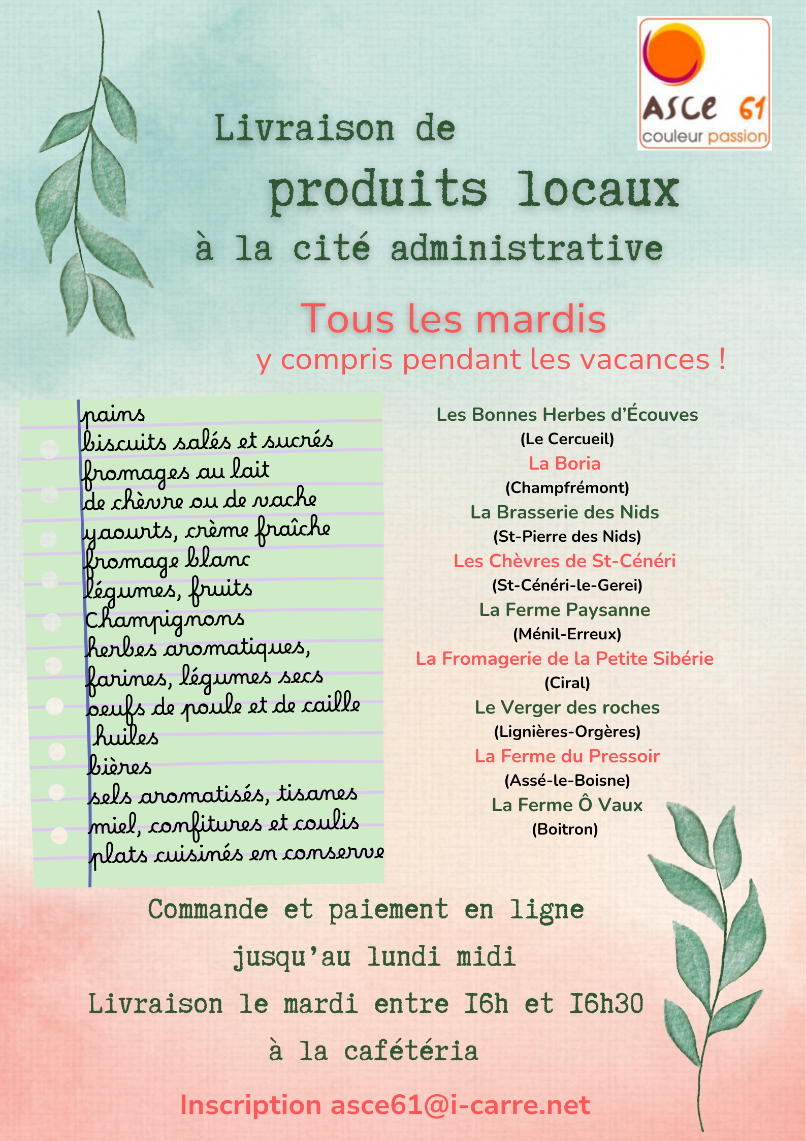 Les commandes sont prises jusqu’au lundi à midi et livrées le mardi entre 16h et 16h30 à la cafétéria de la cité administrative.