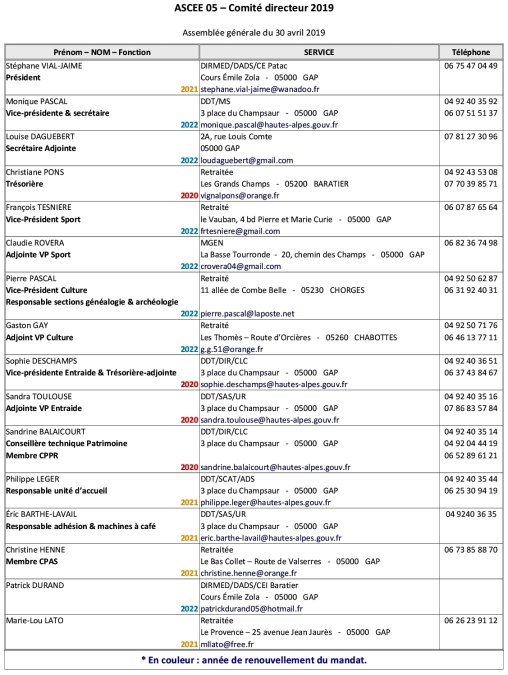 Suite à l’Assemblée générale du 30 avril 2019, voici la nouvelle composition du Comité directeur.