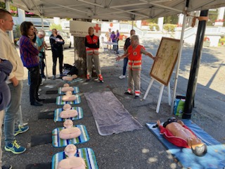 - Atelier 1 : La Croix Rouge (M. Lucien Menjon) a proposé en extérieur (1ers gestes qui sauvent, position de sécurité, massage cardiaque) en présence de trois membres de la CPS.