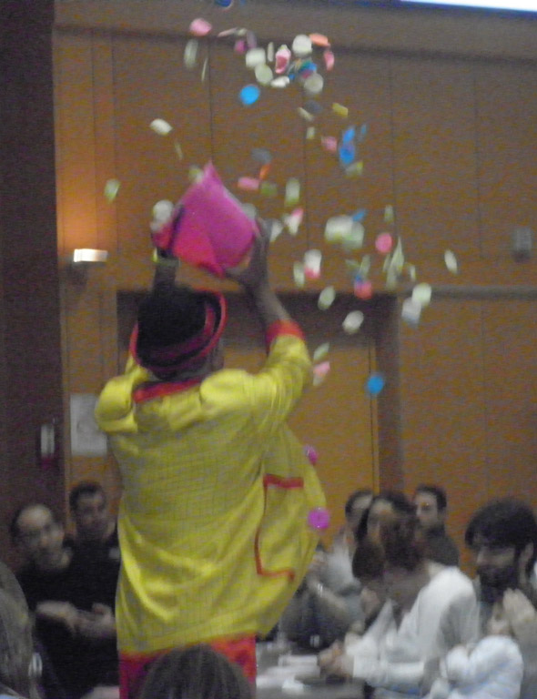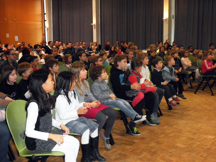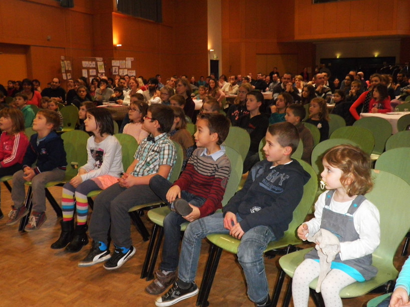 Pendant presque une heure, Lilou le clown avec ses pitreries, ses tours de magie, ses ballons gonflables auxquels il fait prendre forme en un tour de main et ses chants a bien amusé petits et grands. Un goûter était ensuite offert à chacun, puis nos talentueux dessinateurs en herbe qui avaient participé aux concours de dessins sur le thème des coiffes et chapeaux ont été récompensés. Un peu de suspens avec la tombola des programmes qui a fait quelques heureux et puis enfin l’arrivée du Père Noël tant attendu notamment par les plus petits, même si certains préféraient le regarder de loin …. Ce père Noël étant arrivé la hotte pleine, tous les enfants ont pu repartir souriants, avec leur jouet.