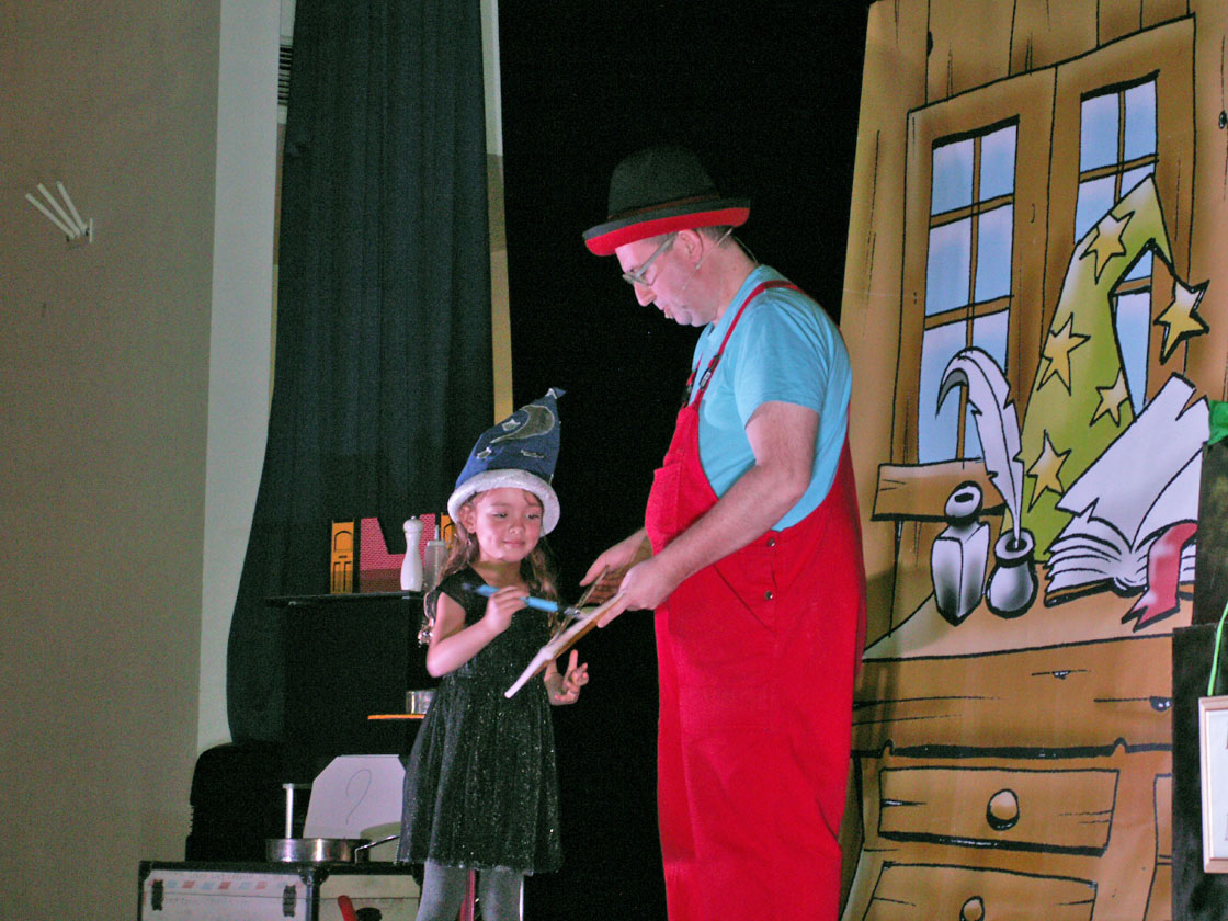 Dès 15h, Flown le clown s’est lancé dans des tours de magie toujours énigmatique, aidé en cela par plusieurs enfants qui n’ont pas hésité à monter sur scène et à jouer de la baguette magique. Ensuite il a présenté au public Dragono une peluche facétieuse à qui il a fait tenir des propos bien amusants.