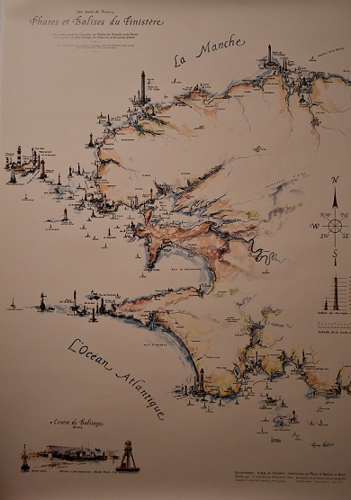 Cette carte représentant le gros balisage maritime du Finistère a été dessinée par Anne CADIOU