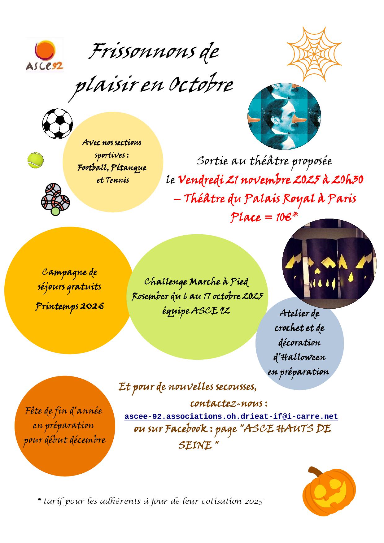 Voici la la lettre d’information du mois d’Octobre de l’ASCE 92 qui vous fera, nous l’espérons, frissonner de plaisir.