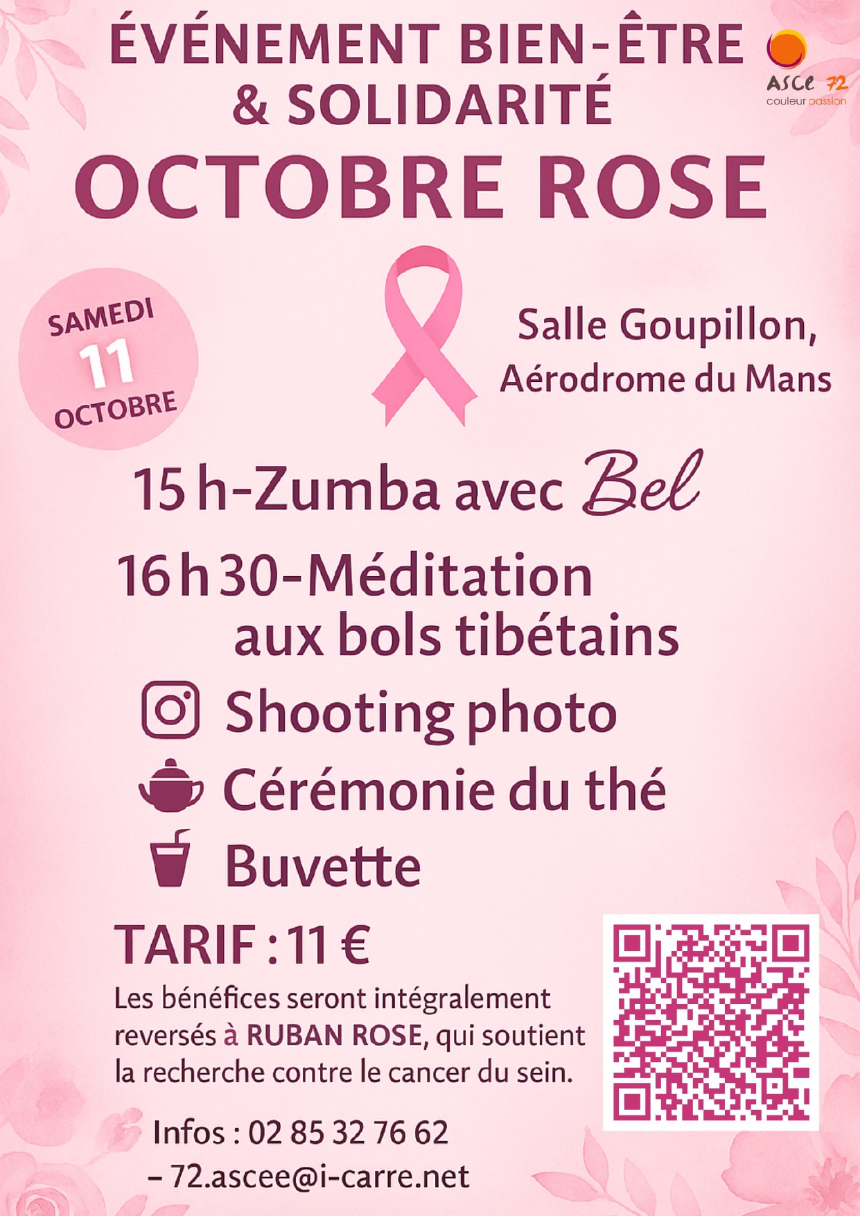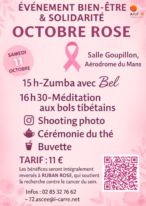 L’inscription est à faire en ligne directement : https://www.helloasso.com/associations/asce-72/evenements/octobre-rose (évènement limité à 50 personnes)