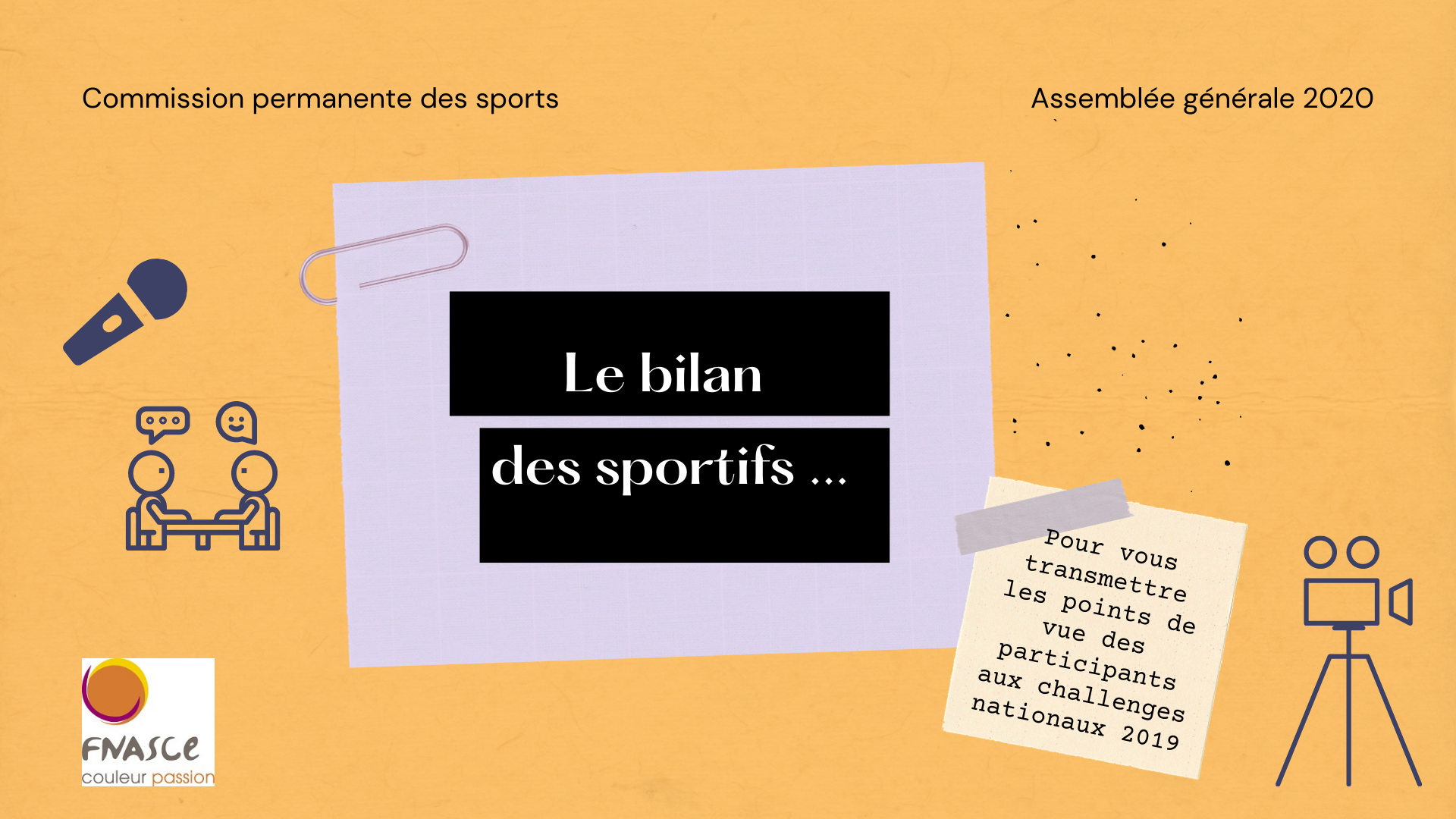 Depuis 2019, les représentants de la commission permanente des sports se sont attachés à collecter l’opinion spontanée des sportifs lors des challenges sportifs nationaux de manière à mettre en valeur les ingrédients d’un challenge réussi, les meilleurs moments sportifs, mais aussi partager les anecdotes vécues au cours des challenges organisés par les ASCE.