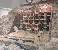 La seconde visite a eu lieu au musée départemental de la Céramique de Lezoux, avec à nouveau une répartition en deux groupes. Nos guides nous ont relaté l’histoire de la céramique et de son arrivée en Auvergne, avec Lezoux devenant l’un des 3 principaux centre d’exportation dans le monde antique romain. Nous avons eu des explications sur la fabrication de la céramique, notamment les poteries sigillées et nous avons pu découvrir différents objets retrouvés lors de fouilles. La reconstitution d’un four de cuisson nous a permis de comprendre le mécanisme, impressionnant, de ce type de four, et de mesurer que la production de l’époque antique n’avait rien à envier dans son empleur à la production industrielle d’aujourd’hui, avec des exportation en masse vers des contrées lointaines (les poteries de Lezoux ont voyagé jusqu’en Inde).