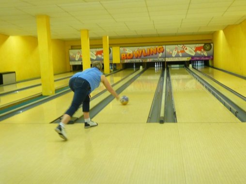 après le traditionnel croque salade suivi par une glace ou une gaufre, les participants se sont équipés de chaussures et de boules pour débuter les parties de bowling.