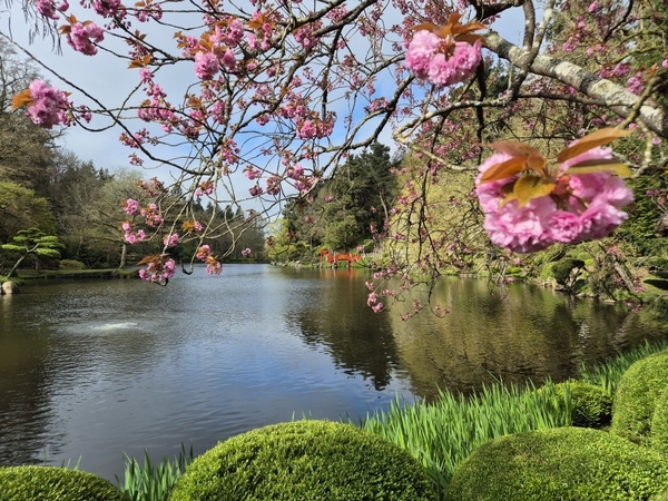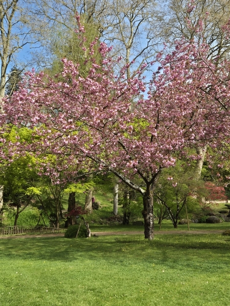 C’était la fin de la période d’Hanami « la contemplation des cerisiers » au Japon. La végétation très riche (prunus, magnolias, azalées, érables, …), le cadre architectural, les tailles japonaises (niwaqi) et la sérénité qui s‘y dégage, font de ce parc, qui est le plus grand jardin japonais d’Europe, un lieu unique.