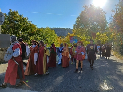 Ce 28ème festival s’est tenu le week-end du 10 et 11 octobre à Vogüe (Ardèche) dans une ambiance conviviale, festive et inspirante. Le thème retenu était le moyen âge : une cavalcade a eu lieu le samedi matin dans les rues de Vogüe, magnifique village ardéchois aux rues pavées sous un soleil éclatant. Les festivaliers avaient revêtu leurs plus beaux costumes, robes et coiffes médiévales.