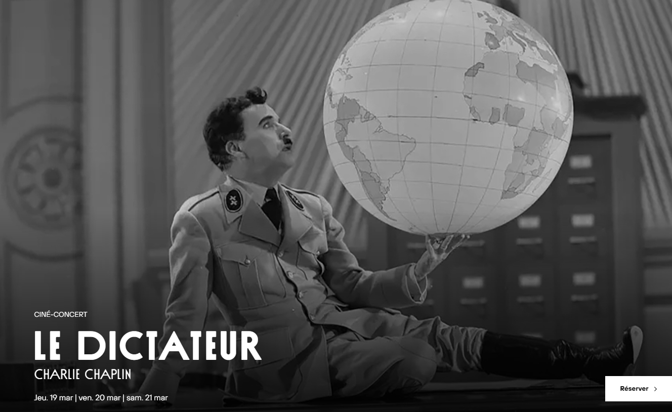 L’ASCEE vous propose un déplacement à l’auditorium de Lyon le 21 mars prochain, pour assister à un ciné-concert (projection d’un film accompagnée par un orchestre philharmonique). Il s’agira du Dictateur de Charlie Chaplin.