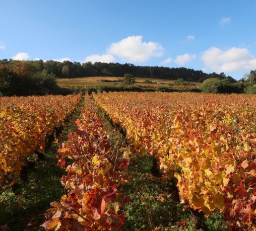 Comme chaque année, la magie opère : la côte viticole se pare de couleurs flamboyantes ,c’est le moment de randonner entre les clos et lisières…et de grappiller des premiers crus, grands crus sans marcher en "ziguezague." :-)))