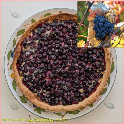 Mais aussi, "de la randonnée à l’assiette " avec la tarte Grand Cru aux raisins pinot noir et chardonnay préparée par Christine à son retour..miam miam (ci-joint 2 photos)