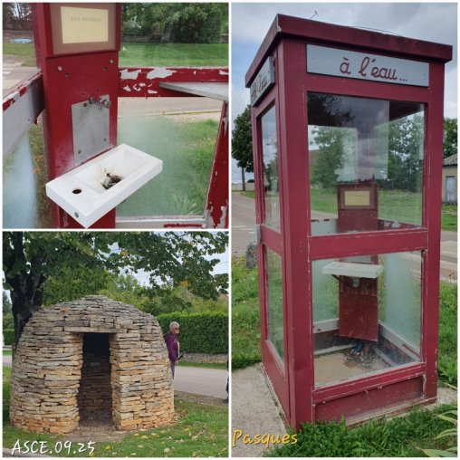 et, comment l’humour et l’imagination des villageois peuvent transformer un objet emblématique d’une époque , en un autre secours aux marcheurs ou cyclistes de passage… ; bravo !
