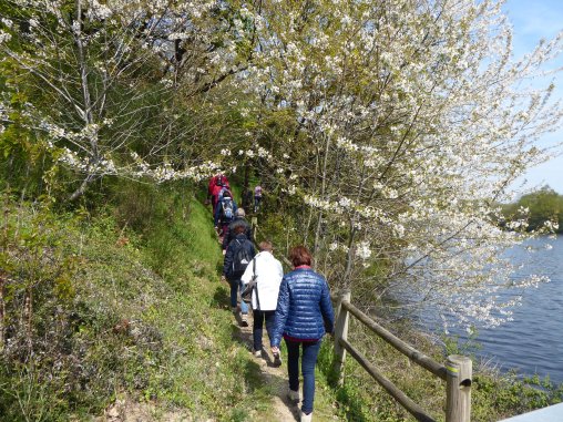 Les quinze marcheurs présents pour cette randonnée ont pu profiter des très beaux paysages depuis les rives de la retenue d’eau du barrage du Marillect à Château-Guibert. Le sentier escarpé, jalonné de fleurs printanières et de cerisiers sauvages avec leur parure blanche offre aux randonneurs des points de vue remarquables sur le plan d’eau. Un très beau circuit, bien aménagé, qui vaut le détour pour les amoureux de la nature.