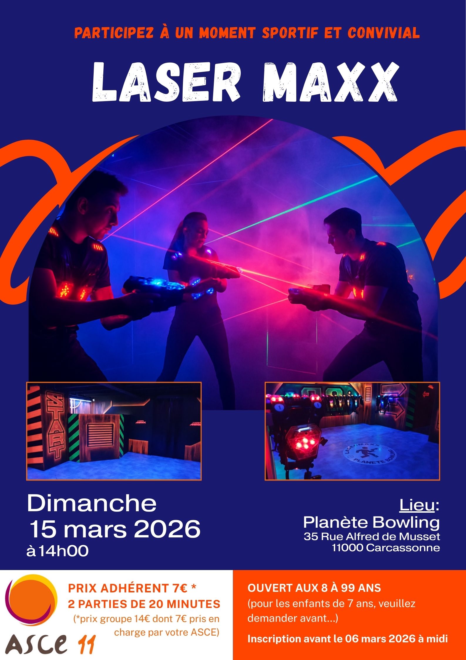 La commission sport de l’ASCE11 vous convie le dimanche 15 mars 2026 à 14h pour partager un moment fun et sportif !