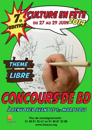 Directement lié à notre prochaine Culture en Fête, ce concours de la BANDE DESSINÉE ne doit en aucun cas reprendre des personnages ou des histoires connus.