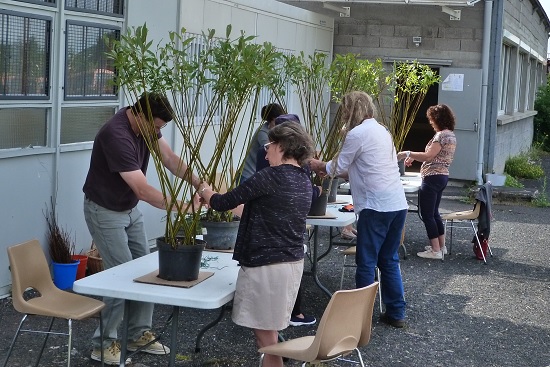 Les participants à la journée d’initiation au tressage d’osier sec et vivant, le 16 juin 2018, ont profité d’un beau soleil pour réaliser leur arbre tressé et leur tontine qu’ils ont, depuis, pu planter dans leur jardin.