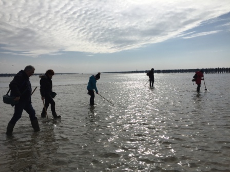Deux fois 14 personnes ont participé sous le soleil à cet après midi découverte de la pêche à pied à la pointe d’Agon qui se termine par la dégustation de la teurgoule et gâche de Dominique.