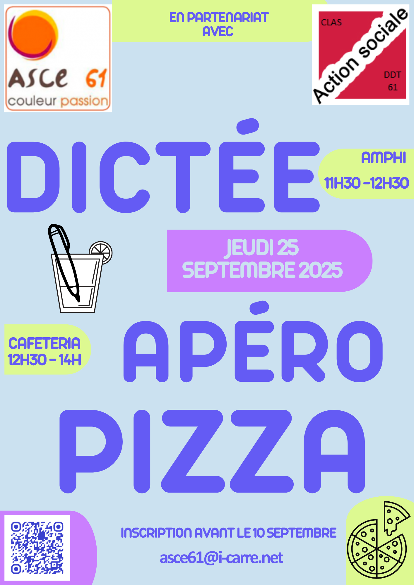 Le retour de la Dictée - apéro - pizza le jeudi 25 septembre 2025