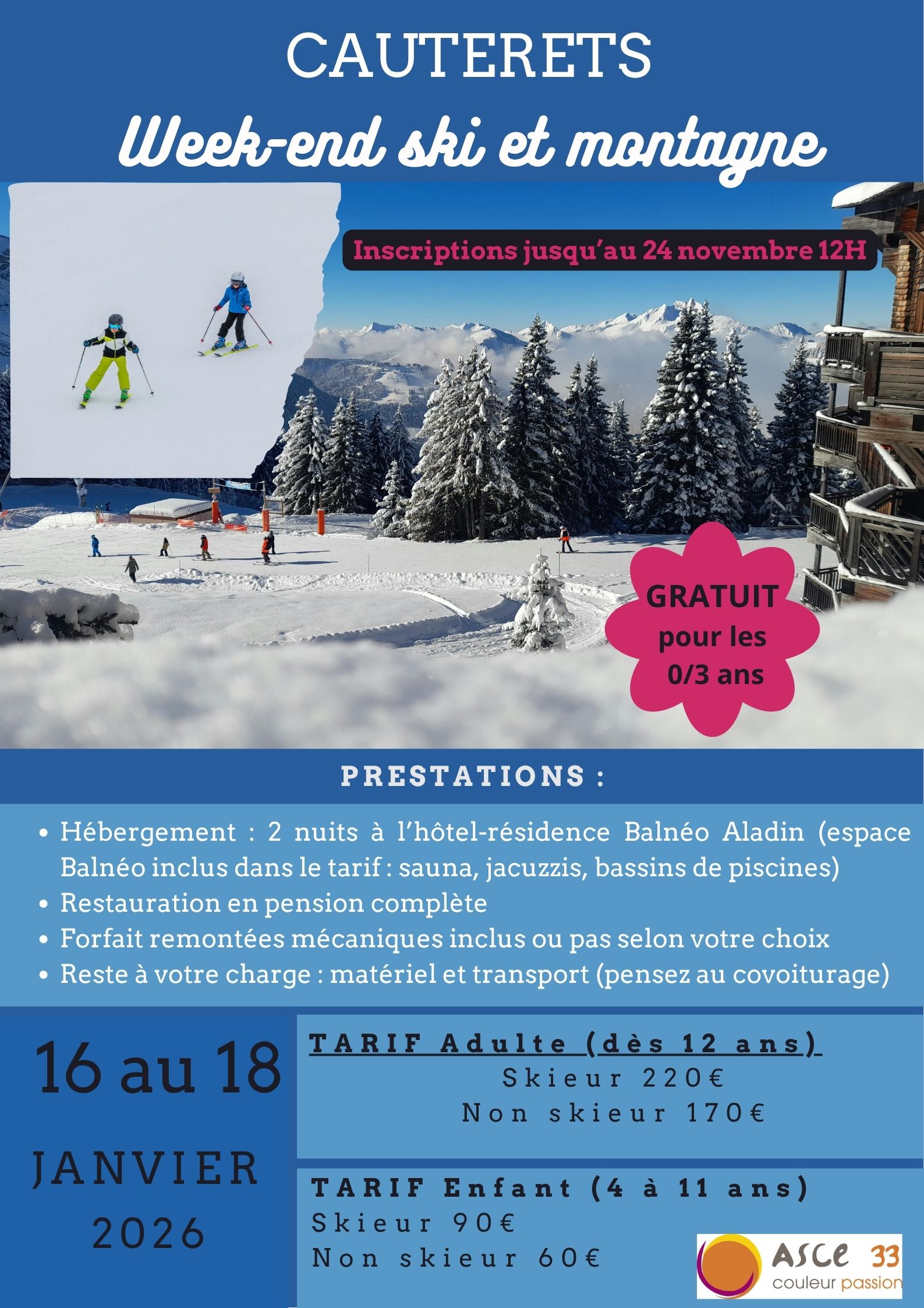 L’ASCE 33 vous propose d’aller recharger vos batteries à la montagne pour attaquer l’année 2026 !